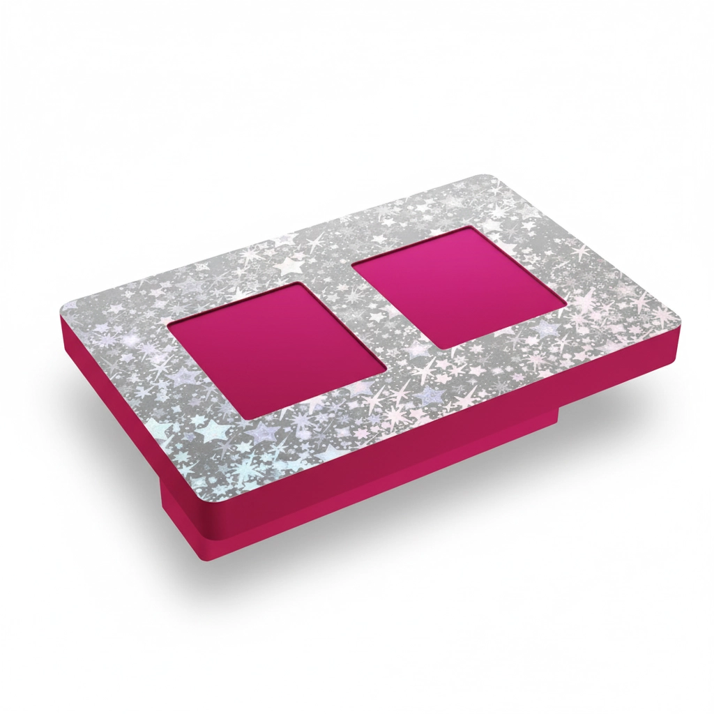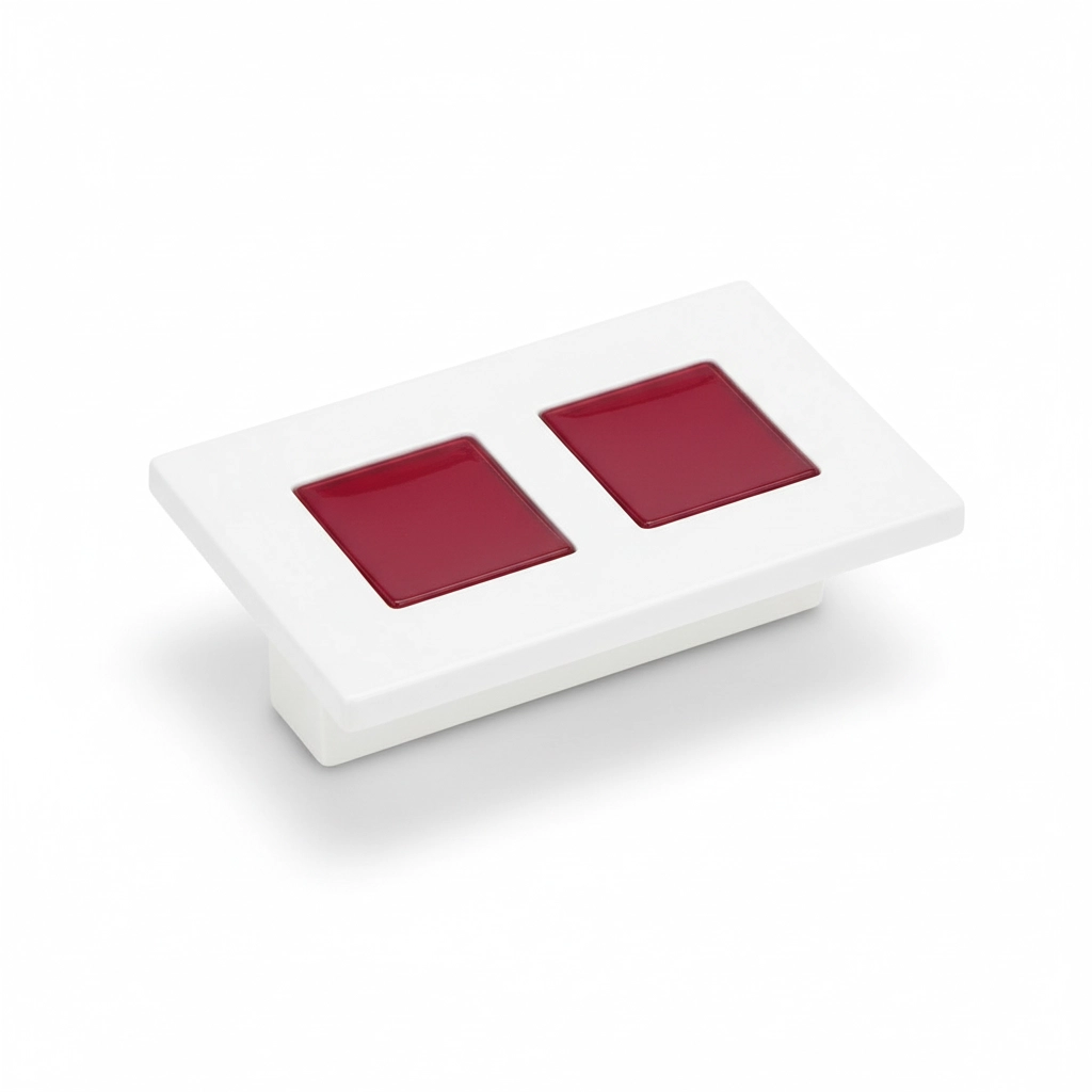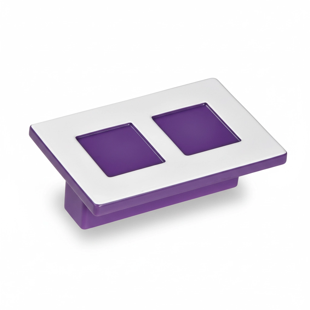 Puxador em polímero com cores vibrantes.